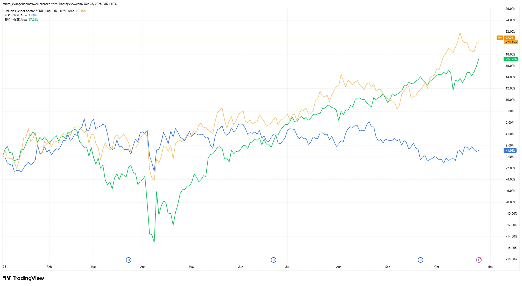 비둘기파적 거시 환경에도 불구하고 2025년 방어 섹터는 부진한 성과를 보였다. 유틸리티(XLU)와 소비재(XLP)는 S&P 500(SPY)에 크게 뒤처지며, 그들의 안전자산 매력이 흔들리고 있다.