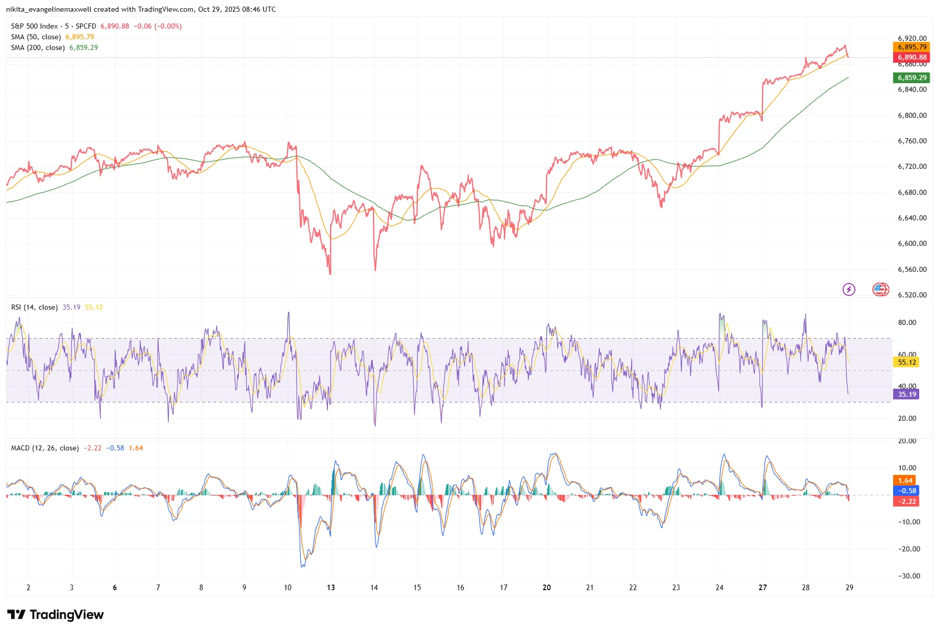 2025년 10월 말 현재, S&P 500은 주요 이동평균선 위에서 상승세를 유지하고 있다. RSI는 과매수 신호를 보였으며, 이는 모멘텀 과열을 시사한다. 랠리가 식고 있는 것일까, 아니면 또 다른 상승의 준비일까?