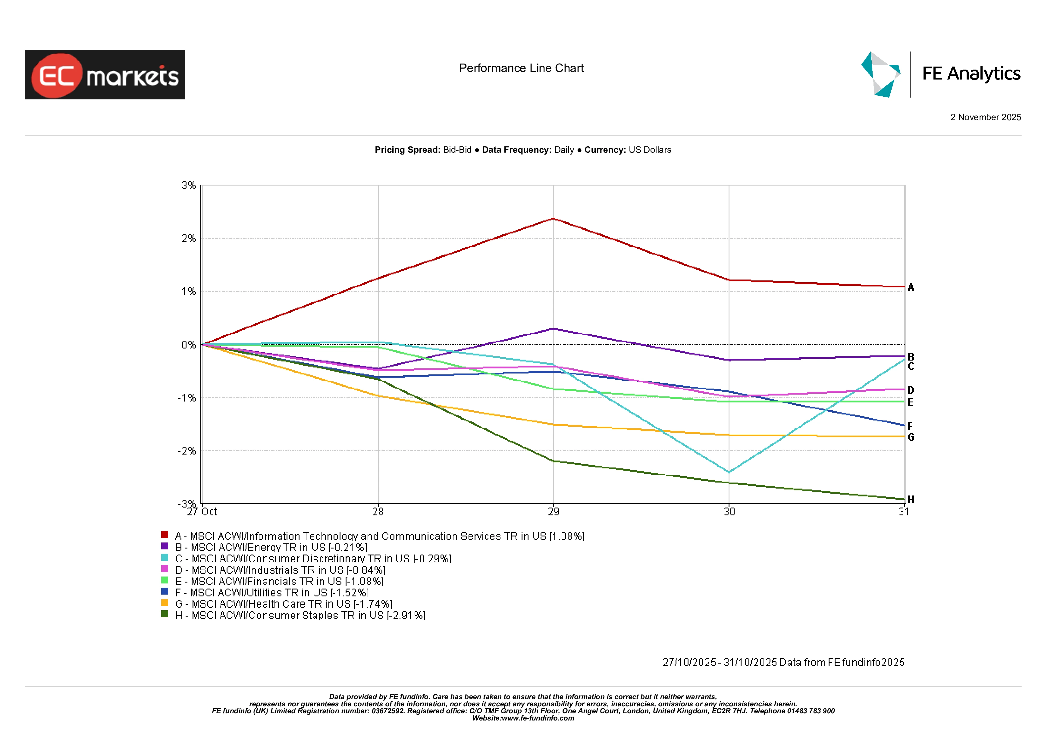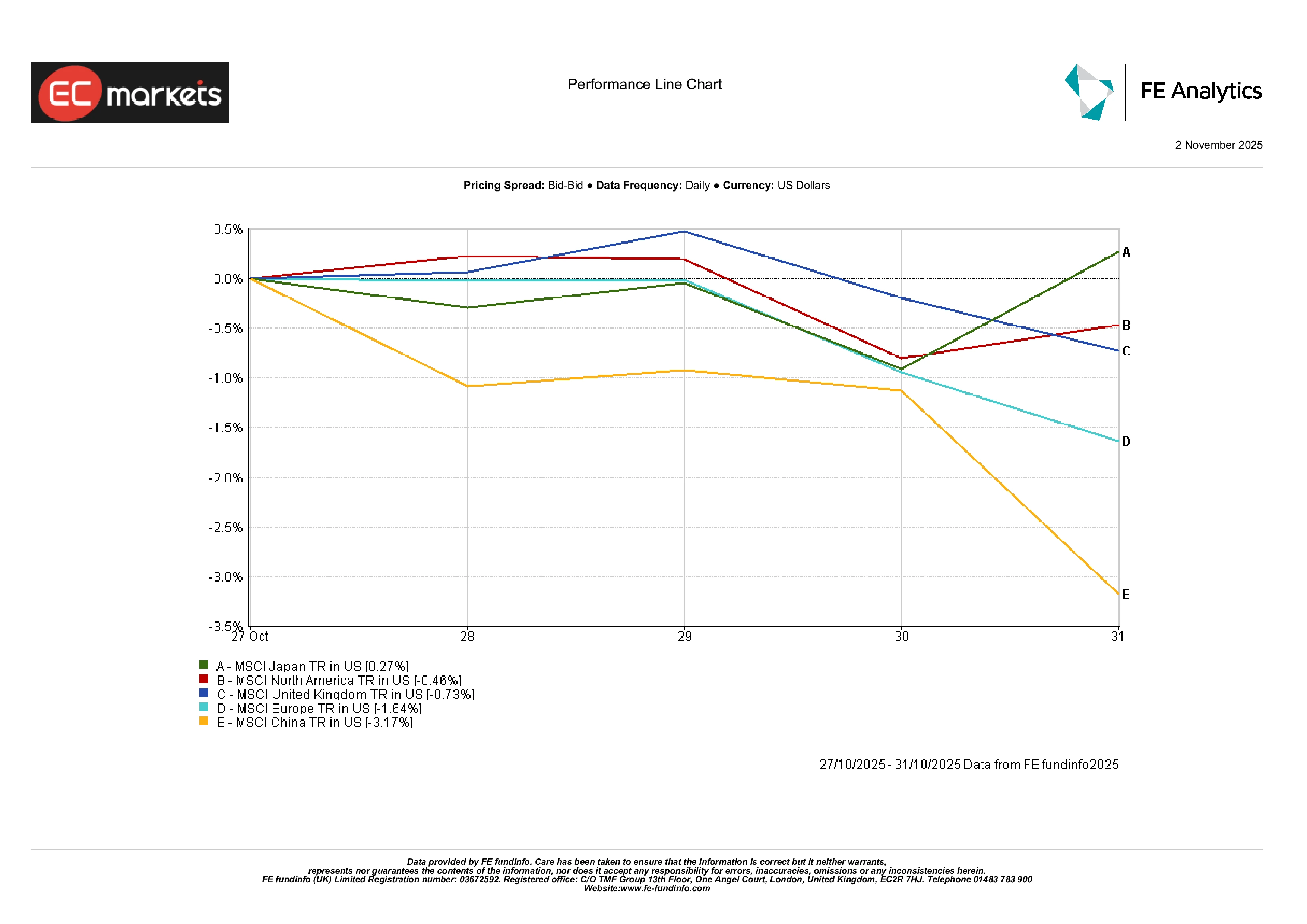 Pendapatan korporat kekal menjadi tumpuan di seluruh dunia, terutamanya dalam sektor pengguna dan kewangan. Walaupun Oktober berakhir dengan keputusan bercampur, latar belakang yang lebih luas — inflasi yang reda, pendekatan berhati-hati bank pusat, dan data yang semakin stabil — masih kelihatan positif menjelang akhir tahun.